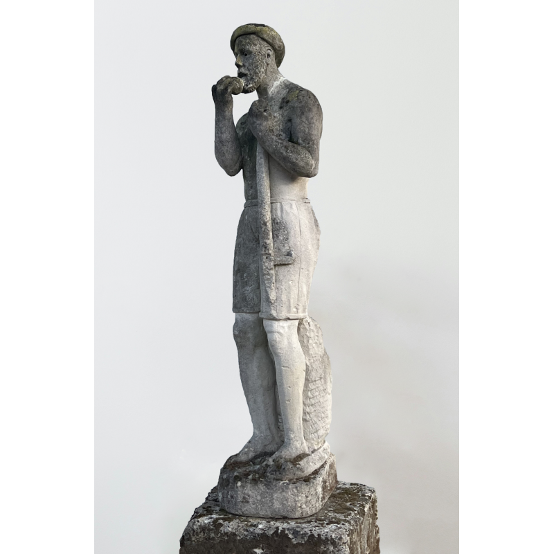 A stone statue representing a shepherd from the Landes region.