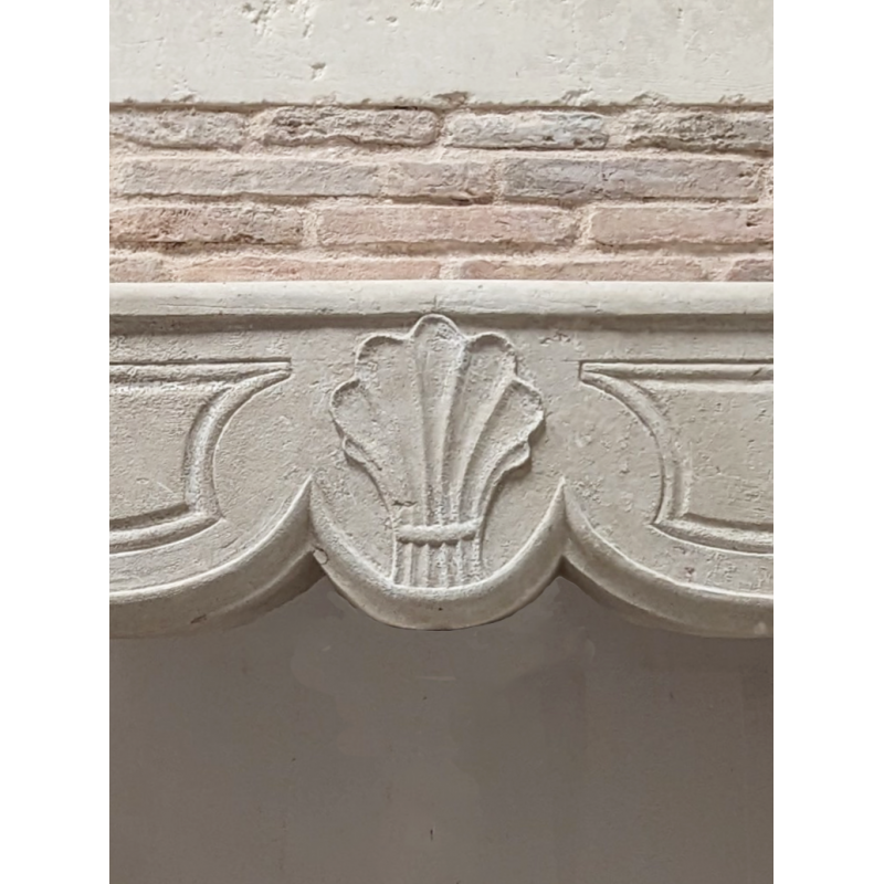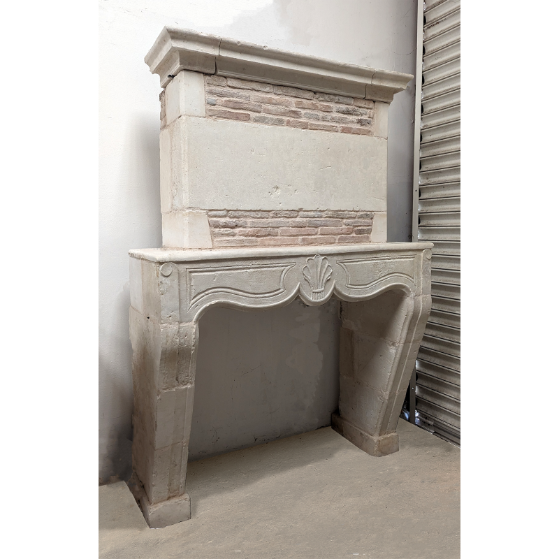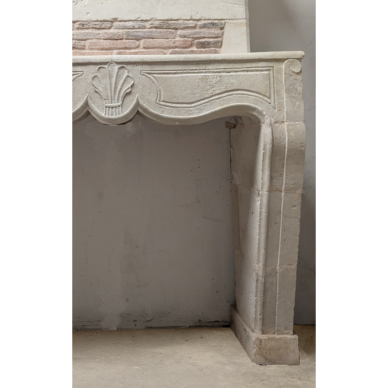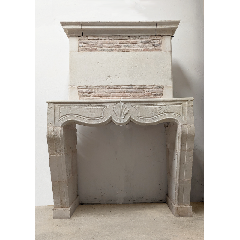 A Louis XV Saintonge stone mantelpiece fireplace.