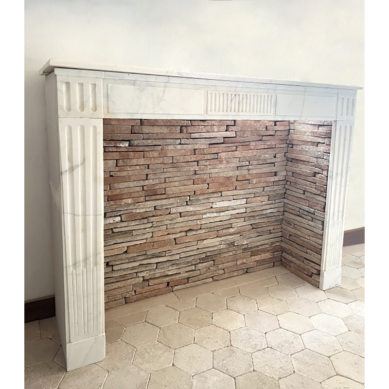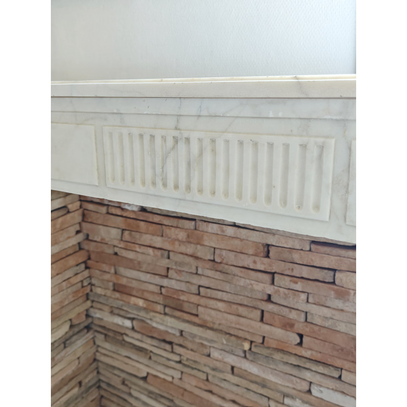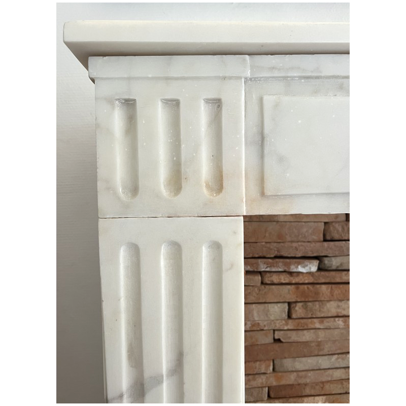 A Louis XVI white marble fireplace.