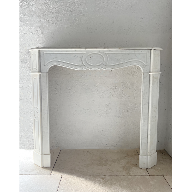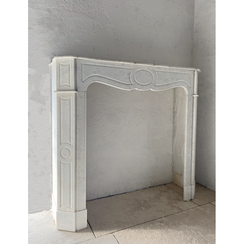 A Pompadour white marble fireplace.