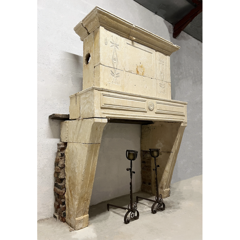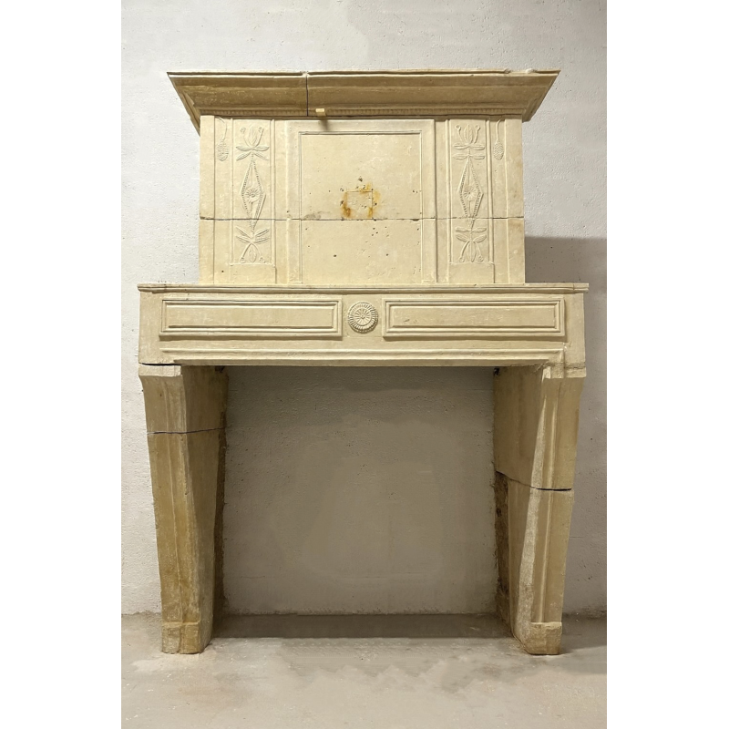 A Directoire fireplace mantelpiece made of Crazannes stone from Charentes.
