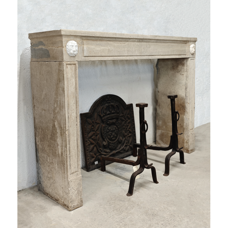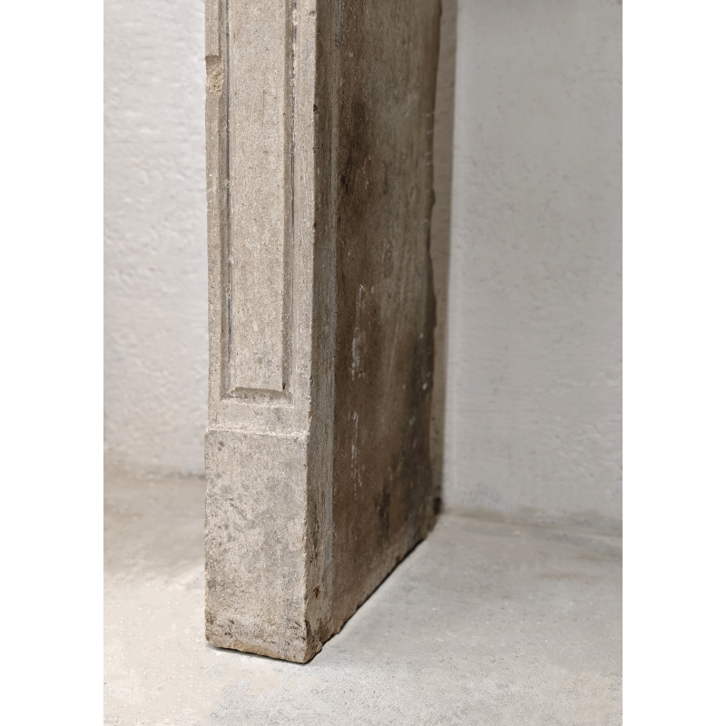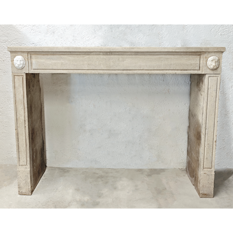 Cheminée en pierre marbrière à la teinte claire, style Louis XVI.