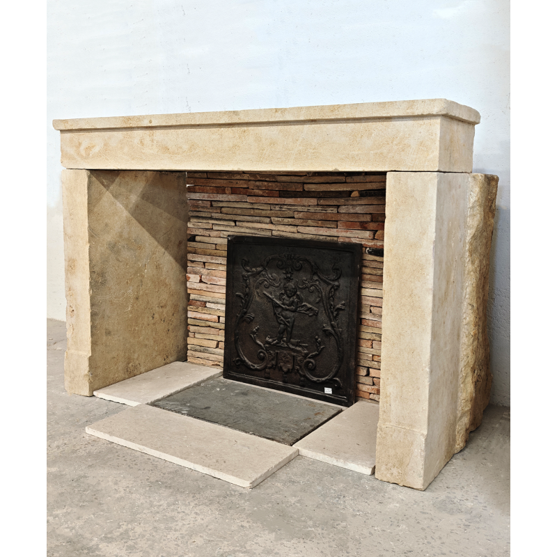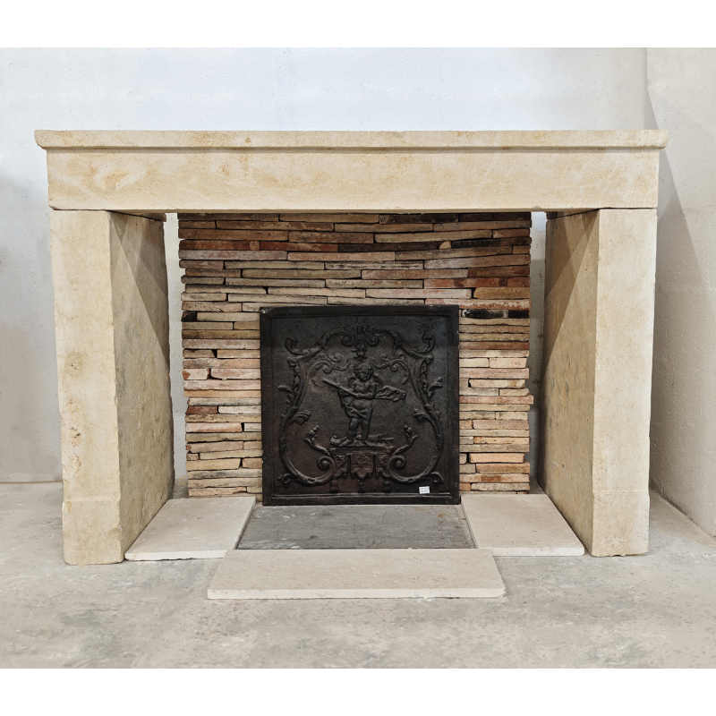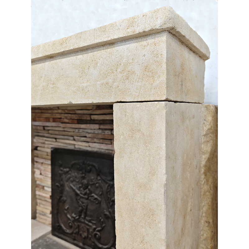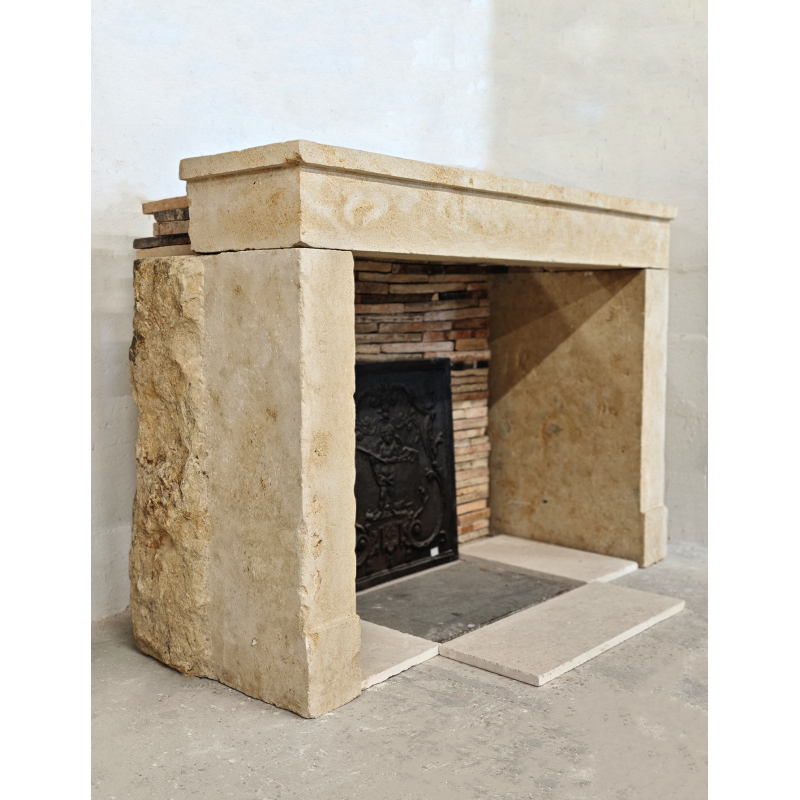 Cheminée campagnarde en pierre ancienne simple à l'allure charentaise.