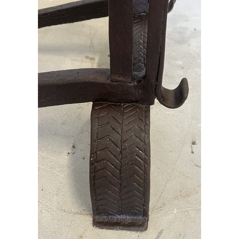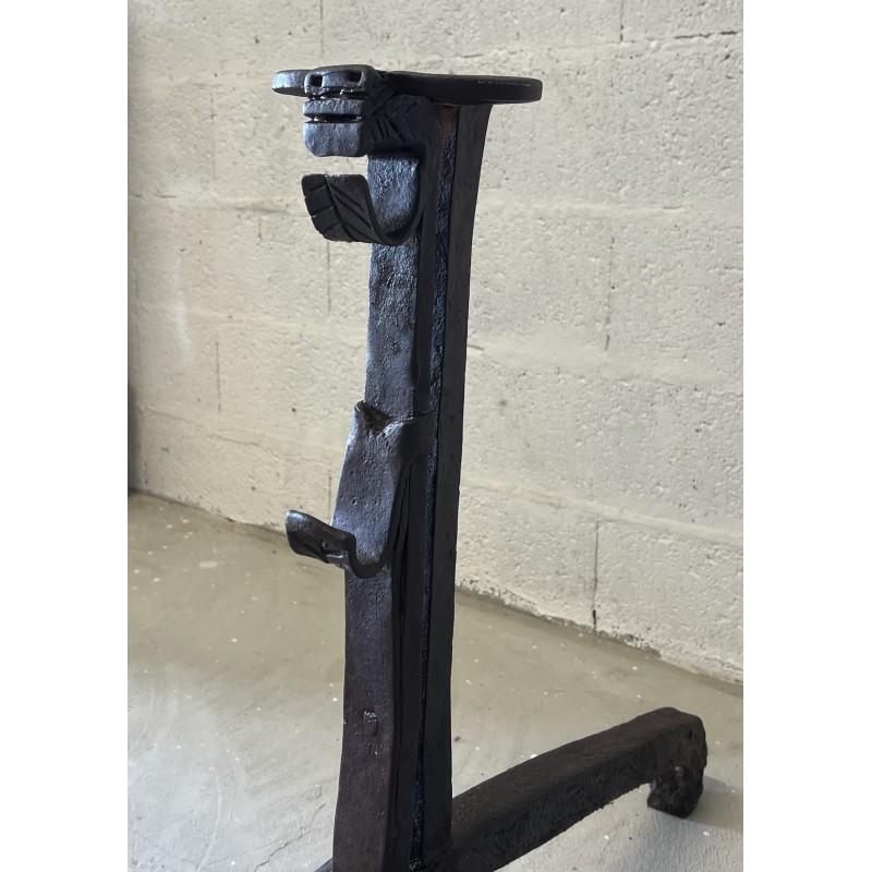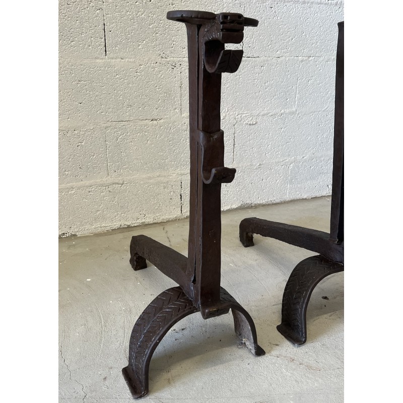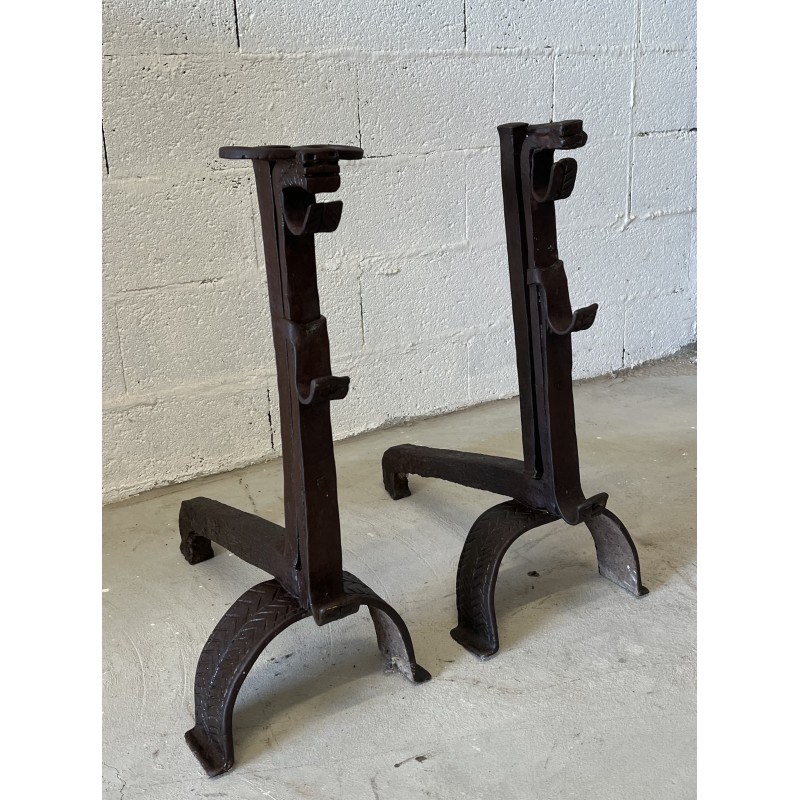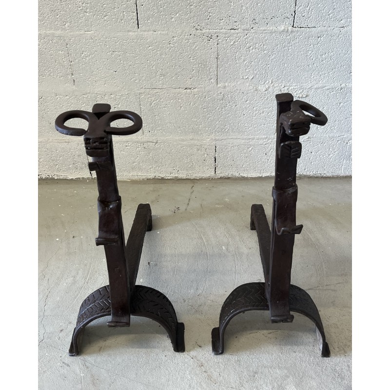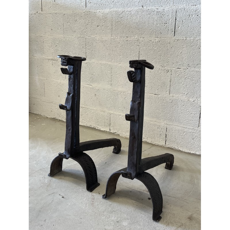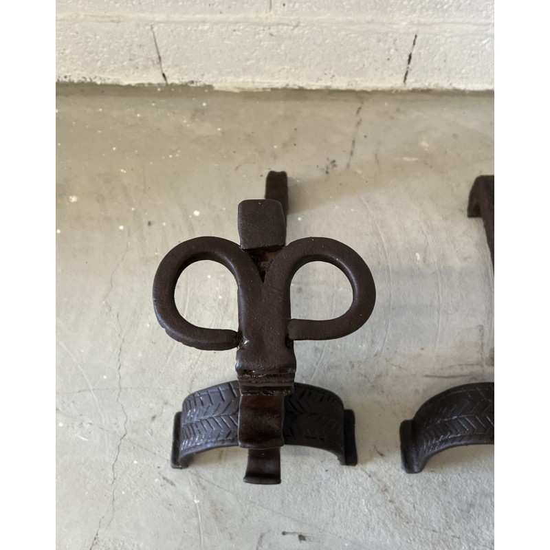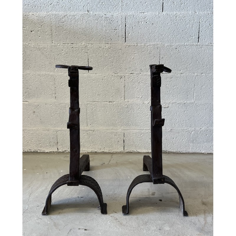 Une paire de chenêts en fer forgé.