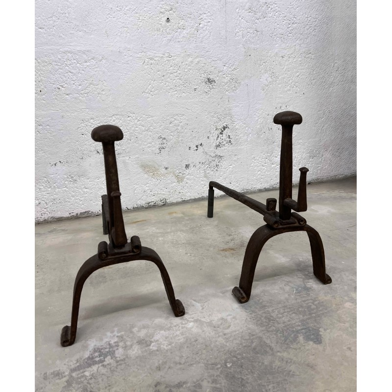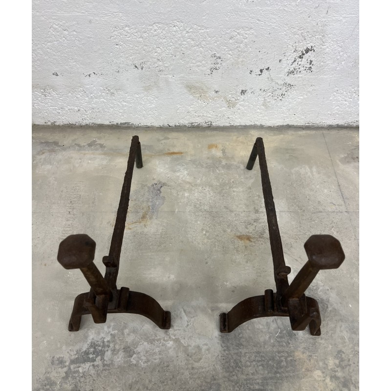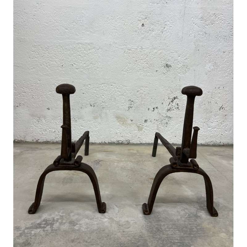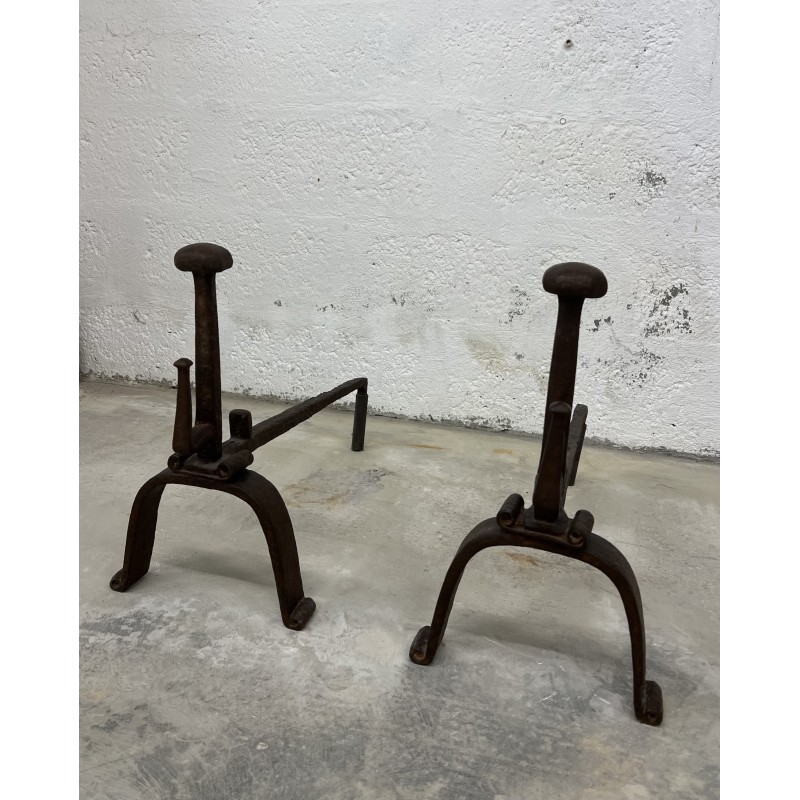 Une paire de chenêts en fer forgé.