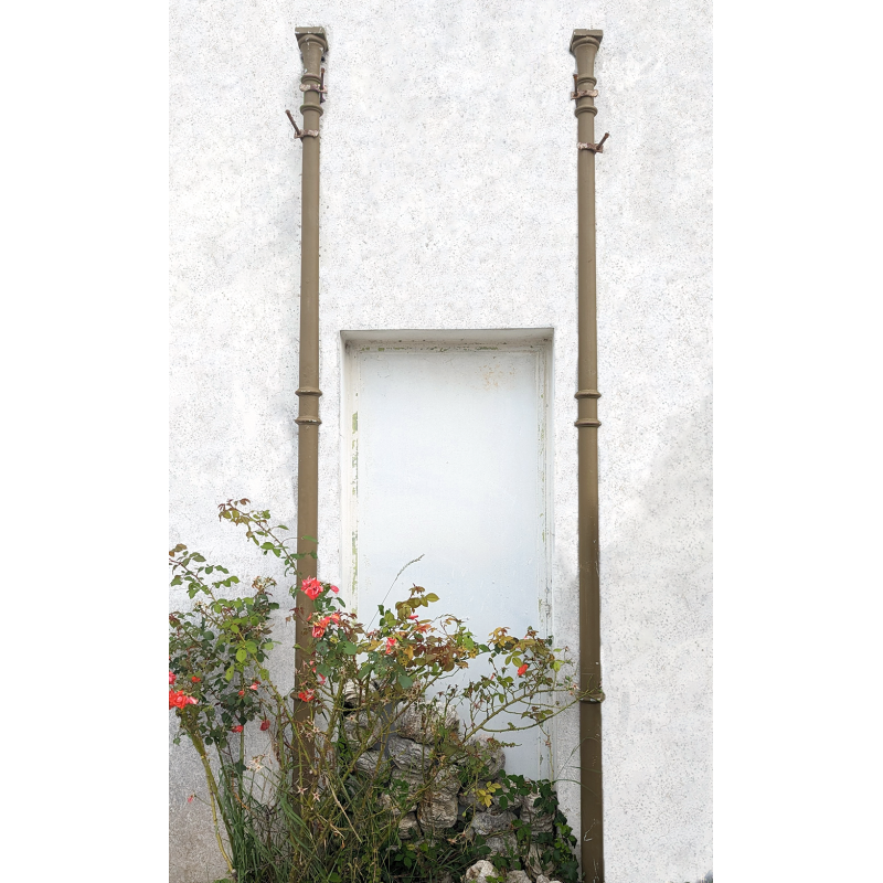 Belle paire de colonnes en fonte, anciennes, au design simple et élégant, avec des anneaux moulurés discrets qui rythment la verticalité. Leur ligne sobre permet une intégration facile, aussi bien dans un projet classique que contemporain. La teinte actuelle, dans un ton chaud légèrement patiné, met en valeur les volumes sans alourdir l’ensemble. Ce type d’élément donne immédiatement du cachet à un mur trop simple et sa belle hauteur offre une présence graphique nette.