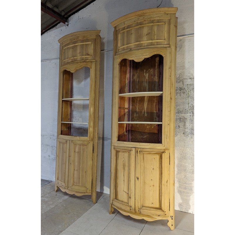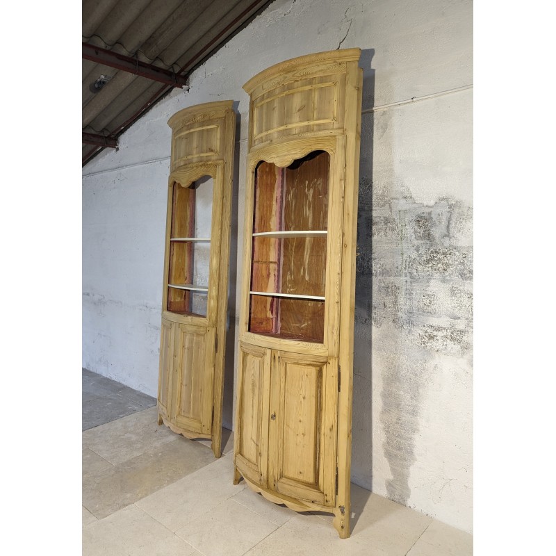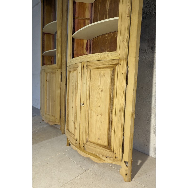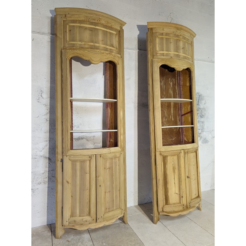 Lot de 2 encoignures en sapin rouge rochelaises décapées.