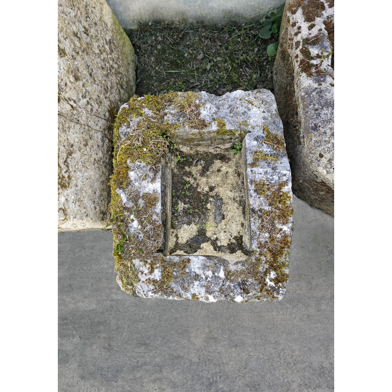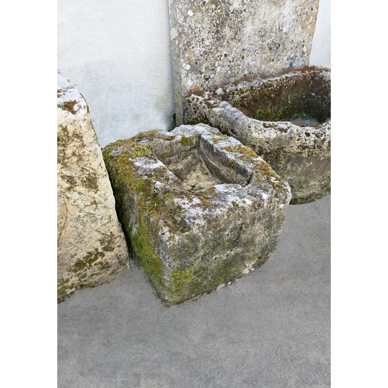 Ce petit bac en pierre ancienne séduit immédiatement par sa patine naturelle exceptionnelle et son authenticité brute. Taillé dans une pierre calcaire épaisse, il présente une forme carrée sobre et équilibrée, avec un intérieur creusé et des arêtes adoucies par le temps. La surface est riche en détails : mousses naturelles, traces d’usure, nuances minérales, tout ce qui fait le charme des pièces anciennes et impossibles à reproduire. Chaque face raconte son histoire. Les dimensions compactes sont idéales pour intégrer facilement la pièce sans encombrer.