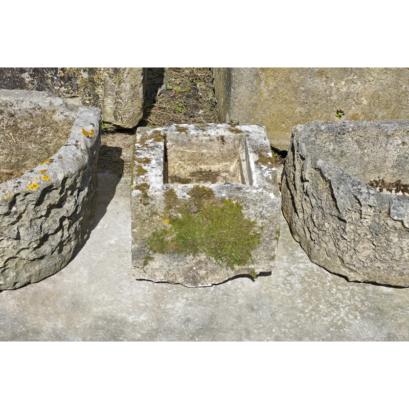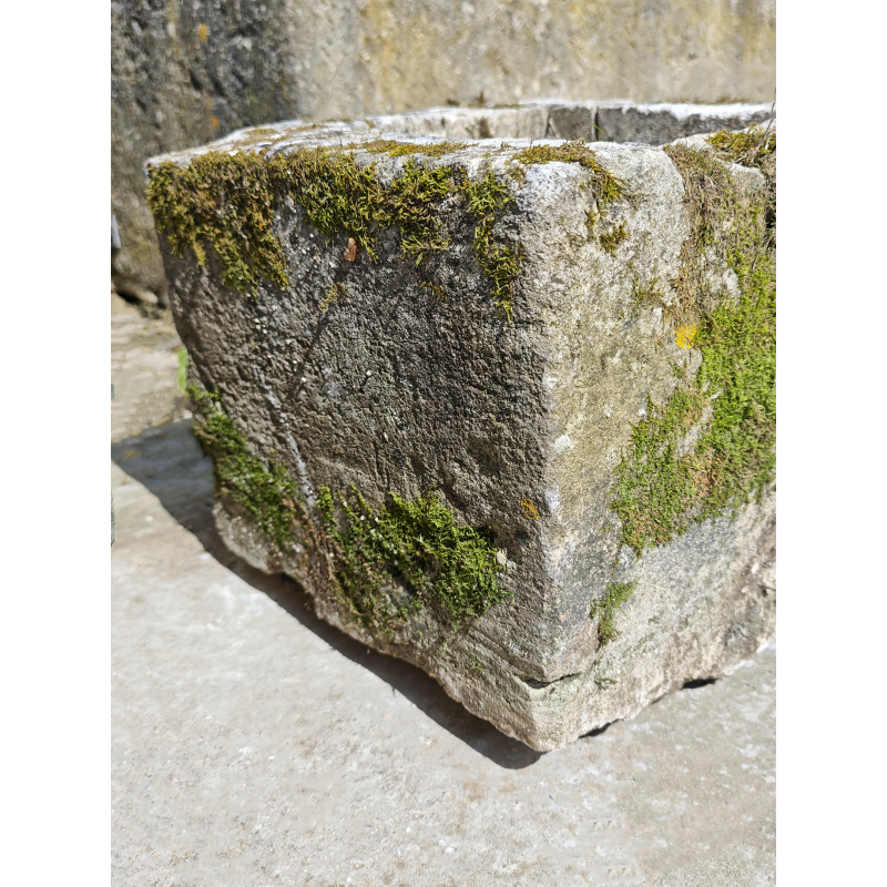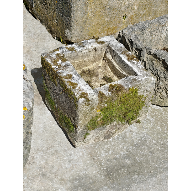 Authentique bac en pierre ancienne, taillé dans un bloc épais, avec une belle présence malgré son format compact. Sa forme carrée, simple et équilibrée, en fait une pièce facile à intégrer et avec un vrai impact visuel. Les nuances du temps sur la pierre font toute la différence et offrent une pièce de caractère.
