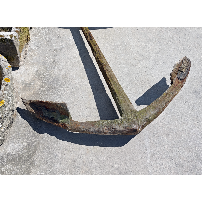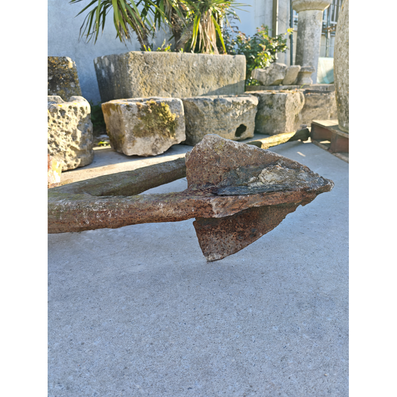 Authentique ancre ancienne en fer forgé, à la silhouette puissante et aux lignes sobres. Cette ancre est une pièce rare, authentique, pleine de caractère et chargée d'histoire, bien loin des reproductions décoratives sans âme.