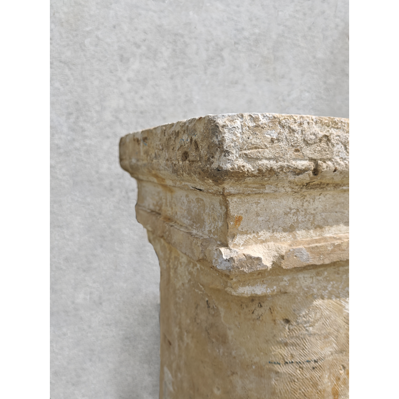 Colonne ancienne en pierre calcaire, patine naturelle, formes sobres et solides. Idéale en décoration de jardin ou en élément d’architecture, elle permet de structurer un espace ou de mettre en valeur une autre pièce.
