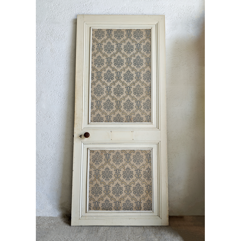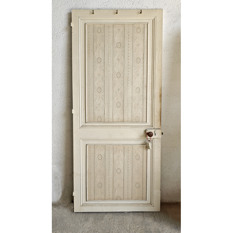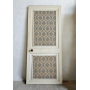 Superbe porte ancienne en bois, entièrement conservée dans son jus, avec un travail décoratif double face rare et très décoratif ce qui permet de jouer avec deux ambiances dans un même espace et de donner beaucoup de personnalité à la pièce. De plus, les poignées et système de fermeture ont été conservés.