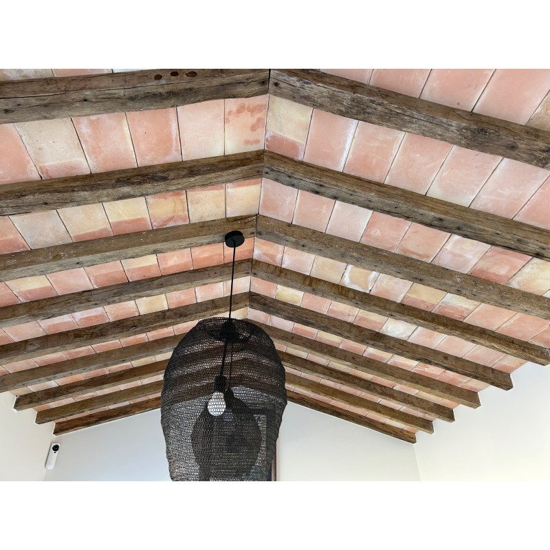 Parefeuille neuf en terre cuite fait mains (15 X 30). Couleur camaïeu pastel rose/ocre. Épaisseur : 2 cm. Prix : 62,00 € HT/m².